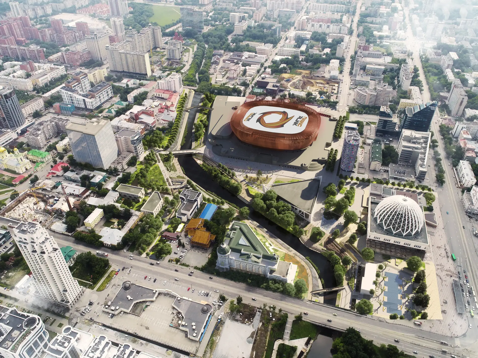 Квартал в центре Екатеринбурга, окруженный улицами Куйбышева, Розы Люксембург, Декабристов и 8 Марта, на протяжении многих лет является центральным местом в планах развития города. С севера на юг его пересекает река Исеть, которая стала причиной основания города в 18 веке, когда первые построенные фабрики питались от ее течения. На востоке и западе расположены потенциальные связи, которые могут создать новый зеленый коридор, соединяющий центр города с периферией. У территории всегда был потенциал объединить различные части города и их функции, сформировать центр Екатеринбурга как единое целое.
